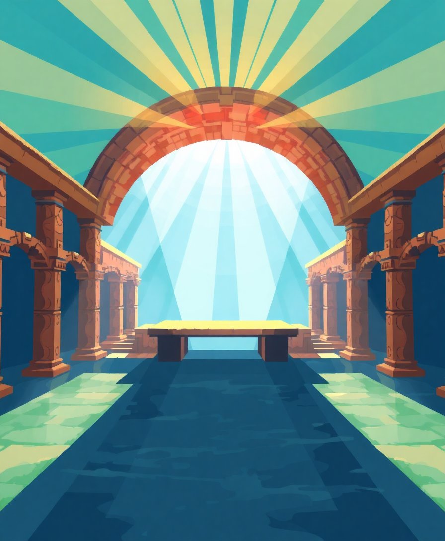 Ultimately, witness your sunken plaza come alive with magnificent rays of light. Furthermore, the finished piece showcases turquoise waters and ancient architecture in stunning detail. Finally, display your completed artwork proudly as a testament to your creative journey.