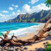 The canvas measures standard dimensions perfect for home display. The tropical island scene creates an impressive focal point for any wall space.