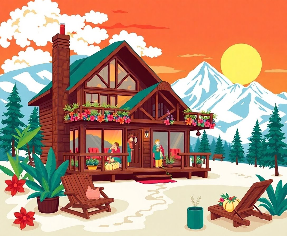 Transform your space with this unique Midcentury Ski Lodge Luau Paint By Numbers, blending vintage winter charm with tropical flair. This extraordinary design captures the playful spirit of a retro alpine retreat where mountain lodge meets island paradise.