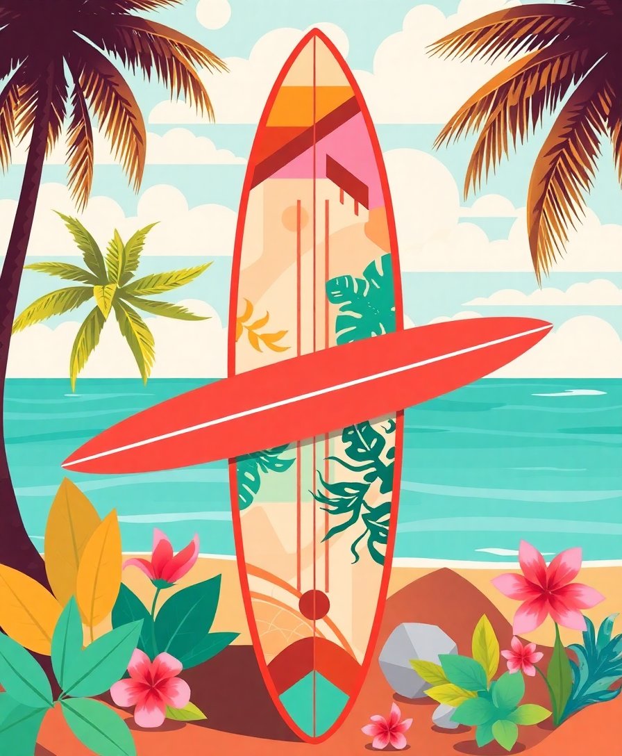 Ultimately, step back to admire your finished tropical surfboard creation. Furthermore, the geometric patterns and coastal elements come together beautifully. Additionally, your completed artwork brings vintage surf culture charm to any room. Therefore, display your masterpiece proudly as a testament to your artistic achievement.