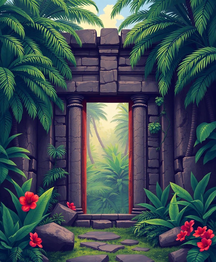 Discover the mystical beauty of forgotten civilizations with this captivating Midday Tropical Ancient Portal Paint By Numbers kit. This enchanting design transports you to a sun-drenched tropical paradise where ancient stone portals emerge through lush foliage. Each brushstroke reveals intricate architectural details bathed in golden noon light.