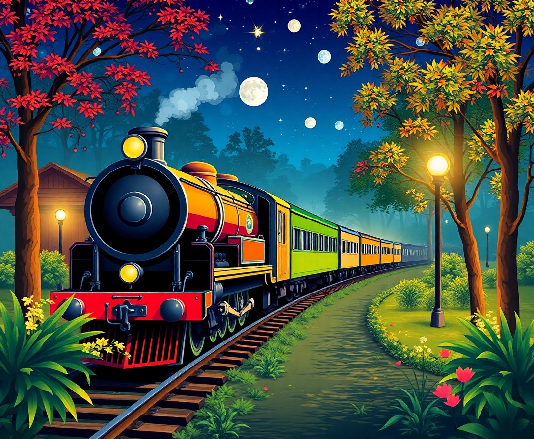 Transform your space with the captivating Midnight Banyan Express Paint By Numbers, a stunning vintage railway masterpiece. This artistic journey combines tropical elegance with locomotive grandeur, creating an unforgettable painting experience.
