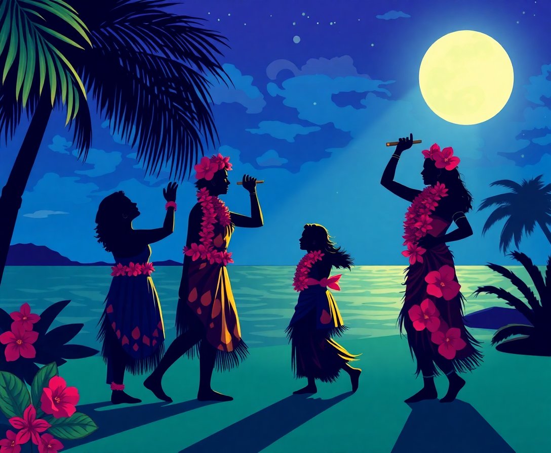 This unique Tropical Island Festivities design captures authentic island culture beautifully. Moreover, the realistic silhouette technique creates dramatic visual impact. Subsequently, the midnight setting adds romantic ambiance perfect for any room.