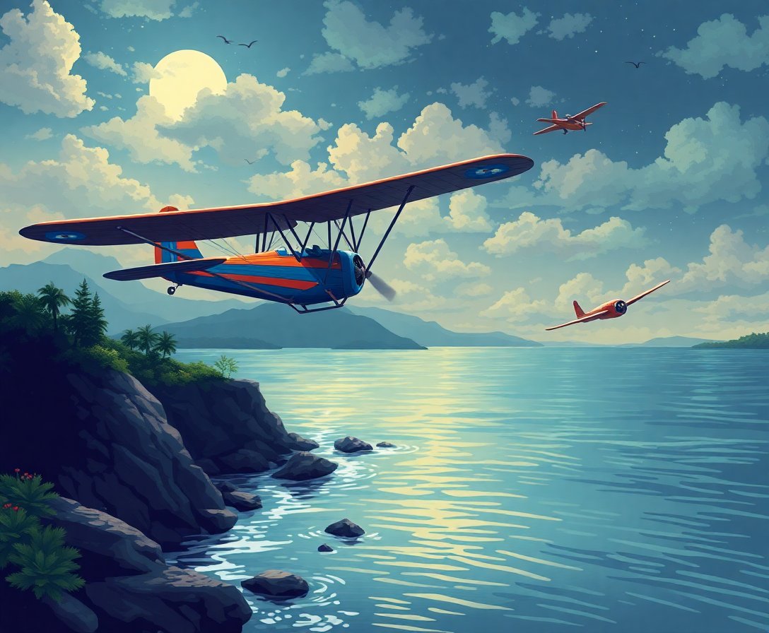 Experience profound relaxation through focused artistic expression. This meditative activity reduces stress while enhancing concentration and mindfulness. Meanwhile, the vintage aviation theme inspires wanderlust and peaceful contemplation of distant lagoons under starlit skies.