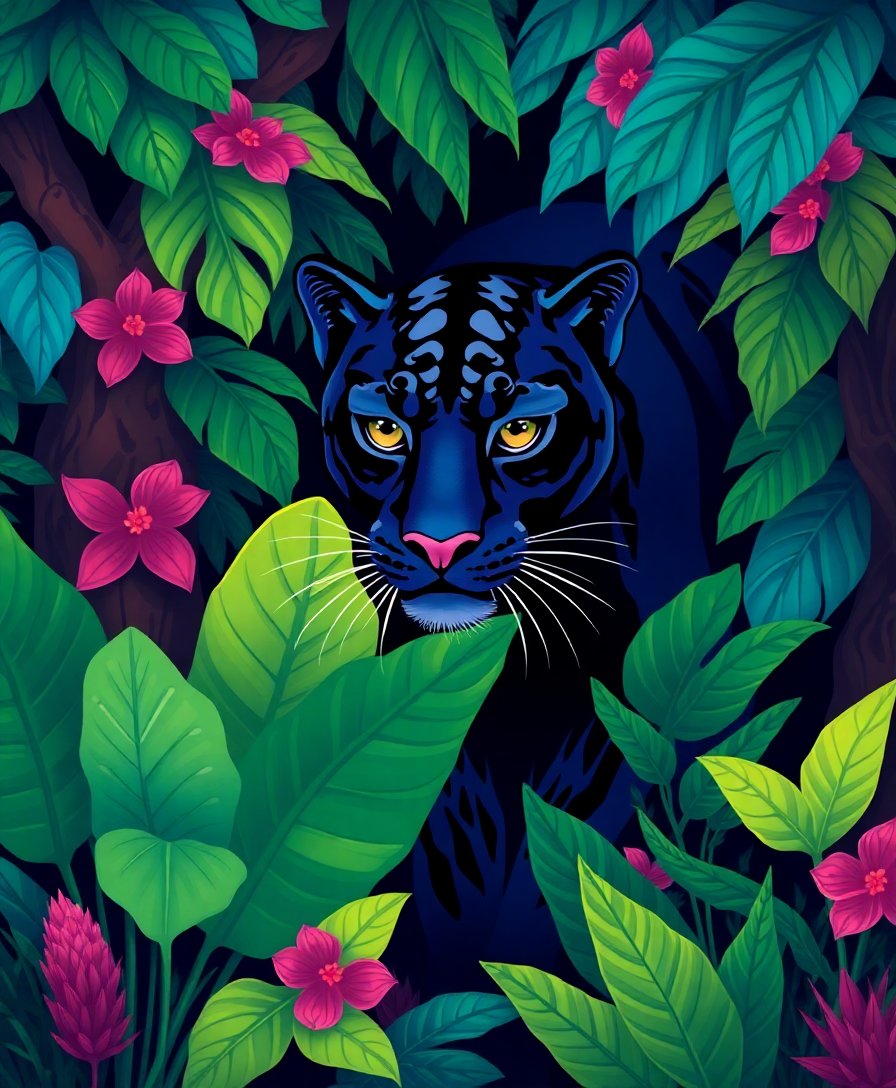 Ultimately, step back and admire your finished tropical grove masterpiece. The realistic panther gazes through vibrant jungle foliage. Therefore, you’ve created a stunning conversation piece for any room.