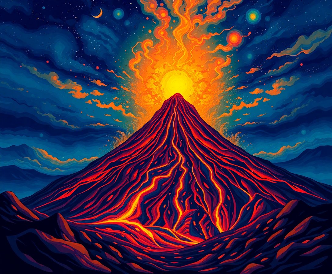 Ultimately, step back and admire your completed volcanic creation. The luminescent glow against the midnight sky creates stunning visual impact. Your finished artwork captures the power and beauty of nature’s most dramatic moments.