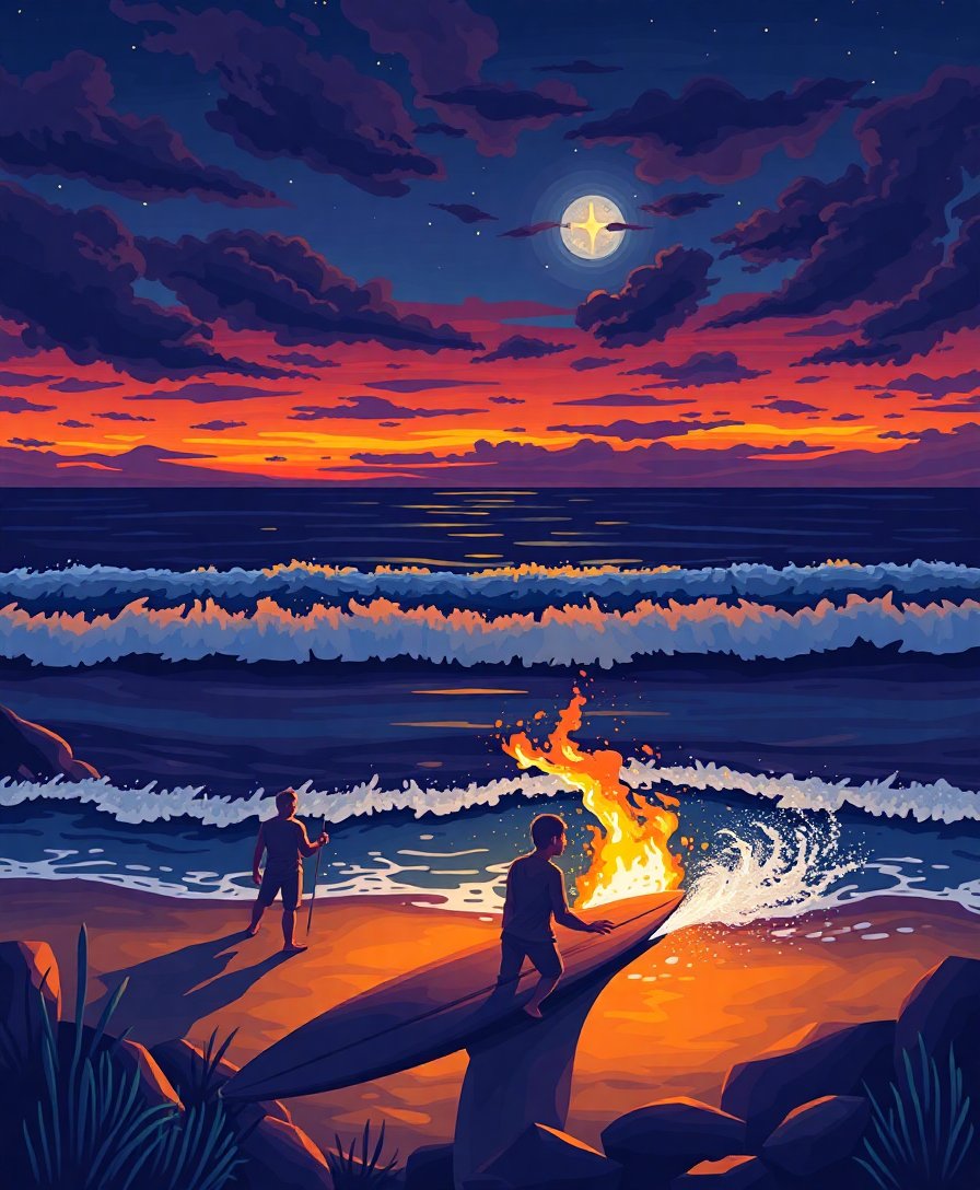 Midnight Surfboard Firelight Paint By Numbers