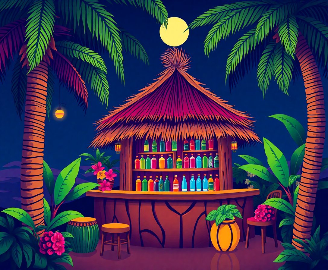 Experience meditative relaxation while painting this intriguing tropical scene. Additionally, the repetitive process reduces stress and enhances focus. Meanwhile, creating this entertainment art piece provides mental clarity and artistic satisfaction. The exotic bamboo tiki setting offers an escape from daily pressures.