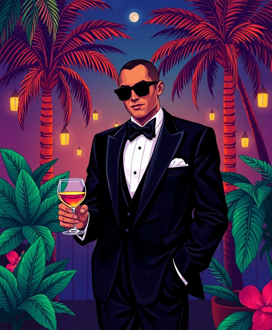 Ultimately, add final highlights to complete your tropical nightclub masterpiece. Therefore, each detail contributes to the overall cinematic effect. Indeed, your finished artwork radiates sophisticated vintage elegance.