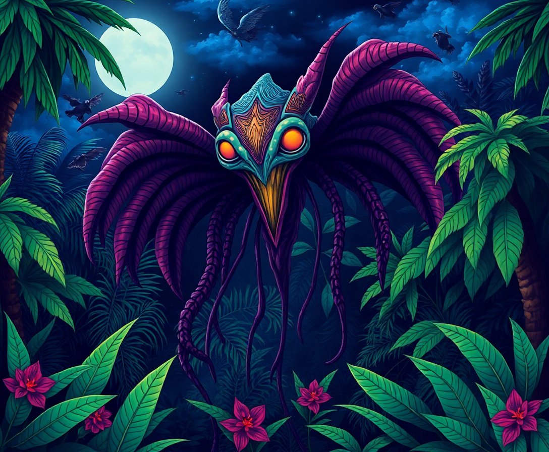 Ultimately, witness your mystical masterpiece emerge as iridescent highlights catch the light. The finished tropical cryptid plumes create an otherworldly focal point. Your Cryptid Jungle Explorations artwork becomes a conversation starter.
