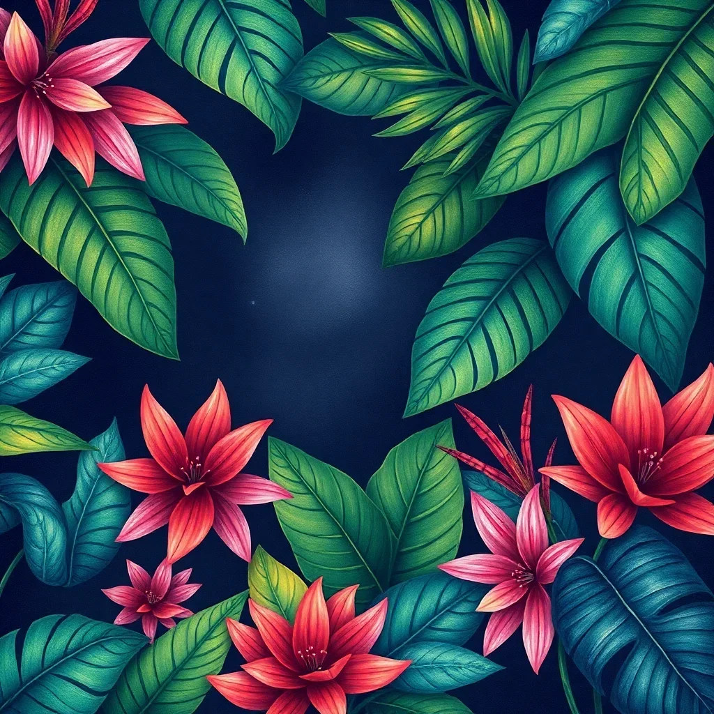 Ultimately, step back and admire your finished tropical masterpiece. Additionally, the dark green botanical elements create striking contrast against the night background. Therefore, your completed artwork becomes a stunning focal point for any room.