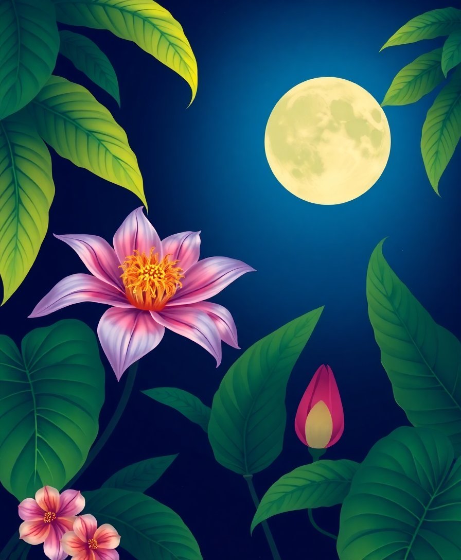 Ultimately, step back and admire your finished tropical moonflower creation. Furthermore, allow the paint to dry completely before displaying. Consequently, you’ll have a stunning piece that captures the mysterious beauty of nighttime flora.