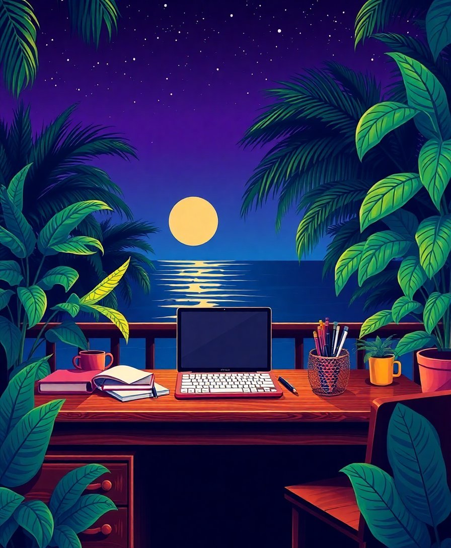 Midnight Tropical Writer Desk Paint By Numbers