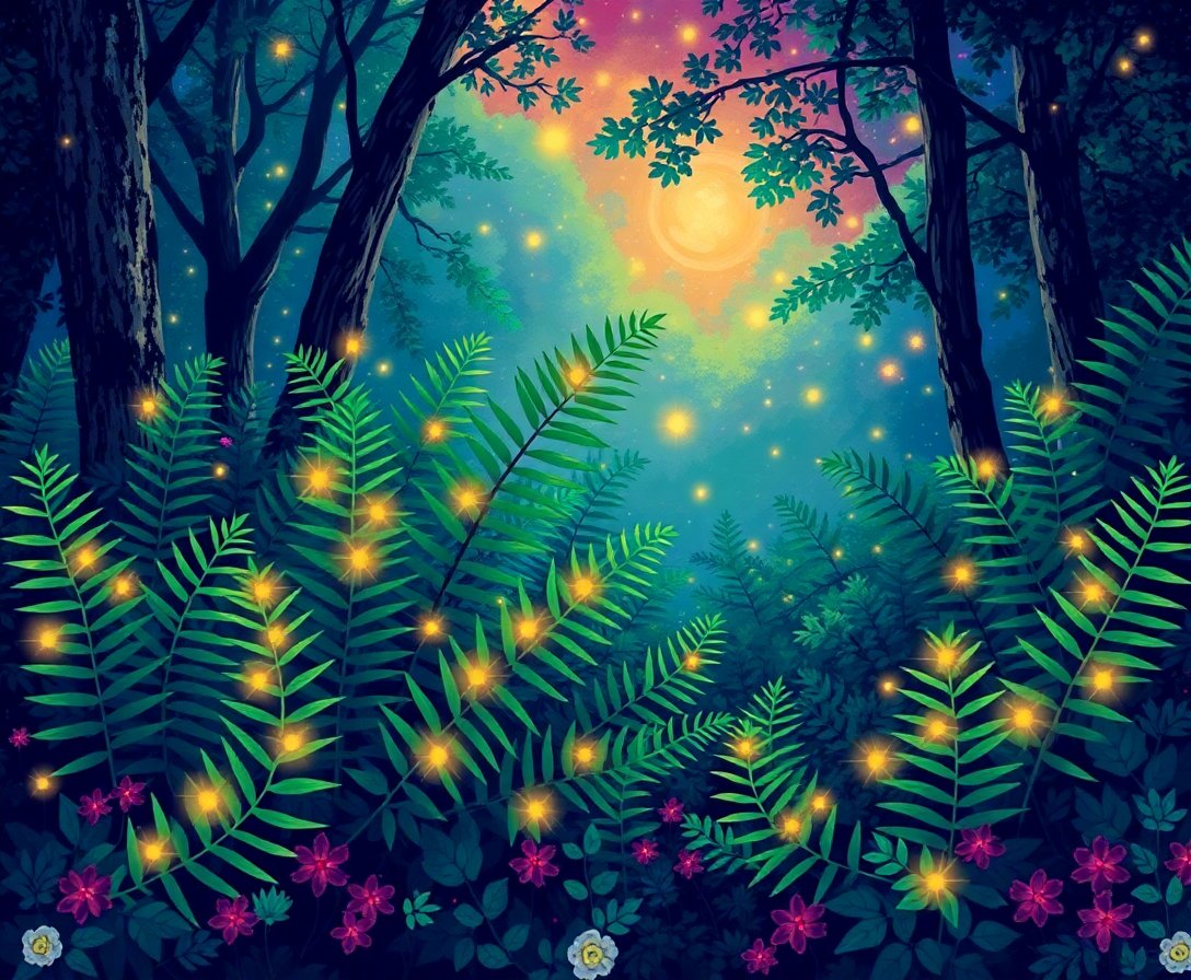 Ultimately, step back to admire your glowing fern masterpiece. The luminous effect creates stunning visual depth. Your finished artwork will bring mystical solstice energy to any room.