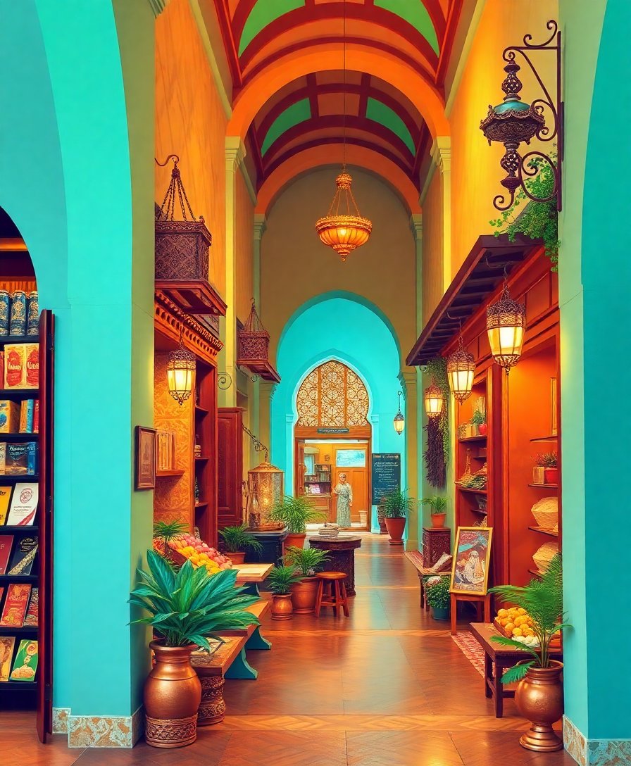 The rich patina colors and herb-inspired mint tones create an authentic Middle Eastern bazaar atmosphere. The tropical and opulent elements combine beautifully for stunning wall art.