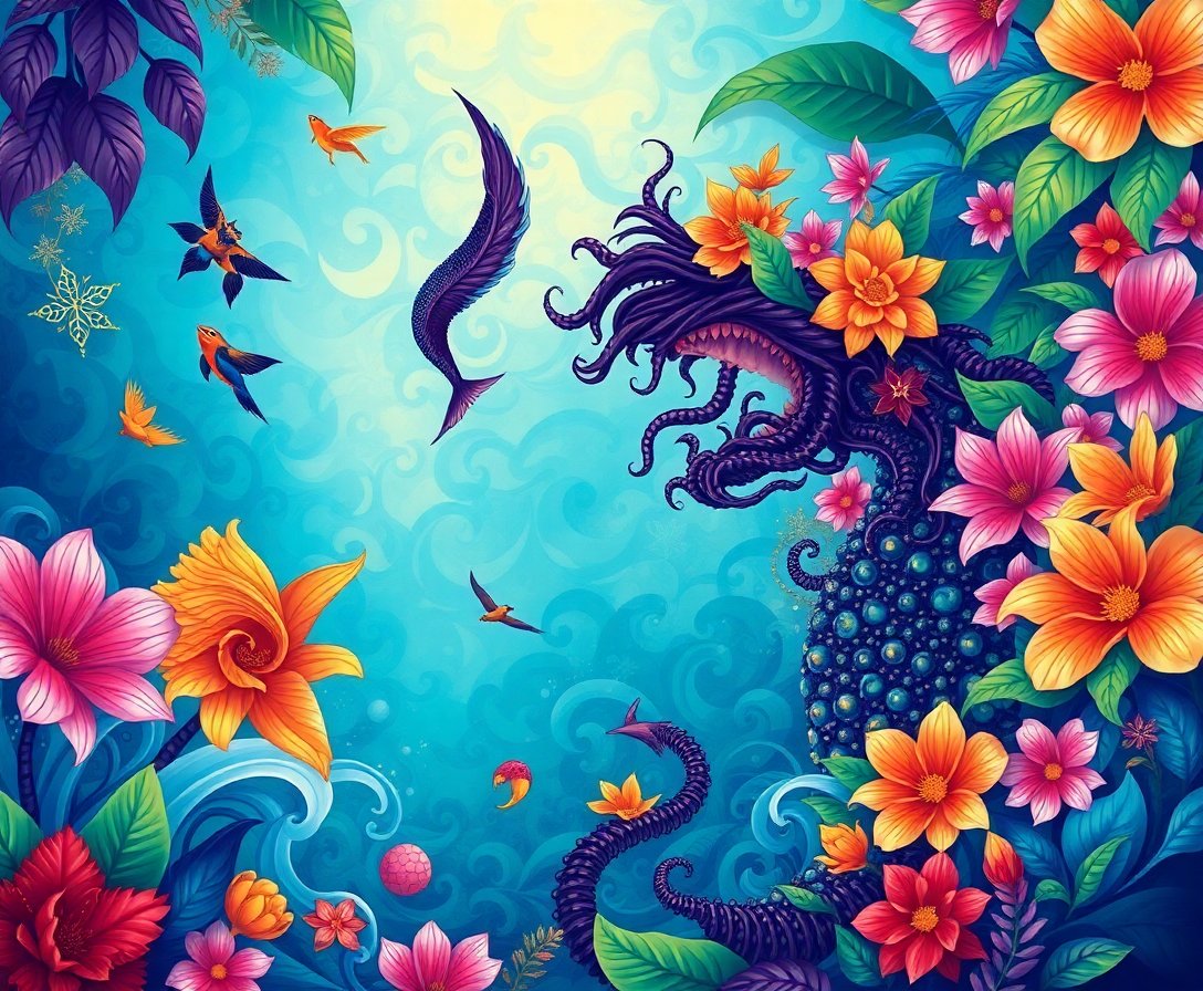 The canvas dimensions provide an ideal display size for most rooms while offering enough detail to showcase the intricate tropical and mythical elements beautifully.
