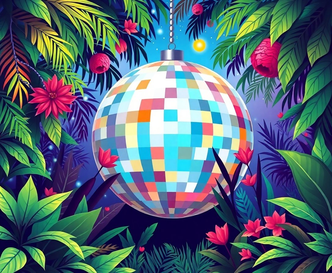 Step into a groovy world where vintage charm meets jungle mystique with this captivating Mirror Ball Vintage Jungle Paint By Numbers kit. This unique artwork combines the nostalgia of roller disco scenes with lush tropical greenery, creating a stunning piece that reflects both nature’s beauty and retro culture.