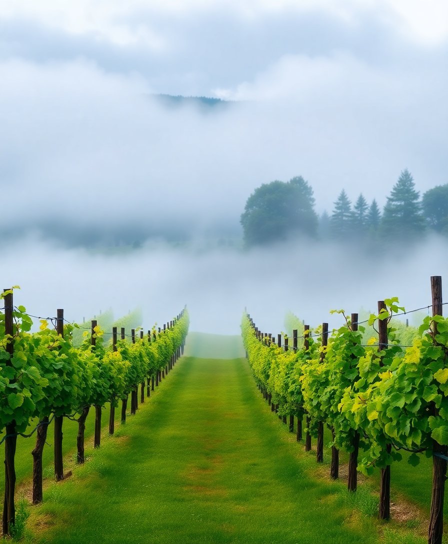 The high-quality linen canvas measures 16×20 inches, providing ample space to capture the intricate details of the misty vineyard scene while remaining manageable for home display.