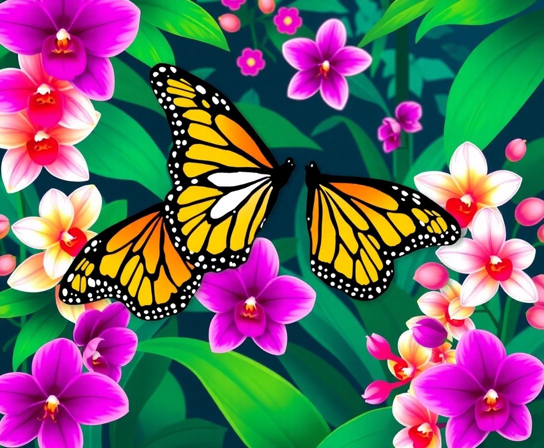 Embrace the tropical paradise waiting within your Monarchs Among Jungle Orchids Paint By Numbers kit. Each painted monarch brings jungle serenity into your daily life.