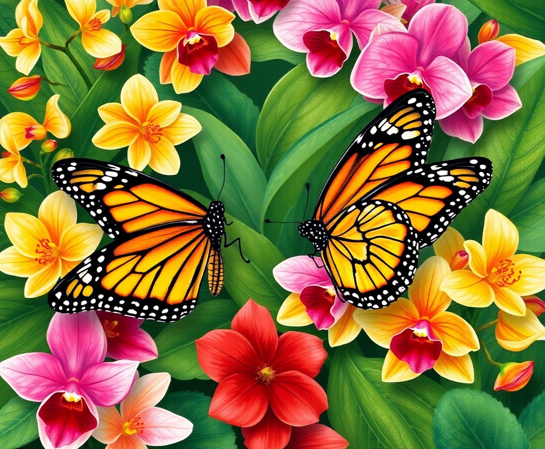 Monarchs Among Jungle Orchids Paint By Numbers