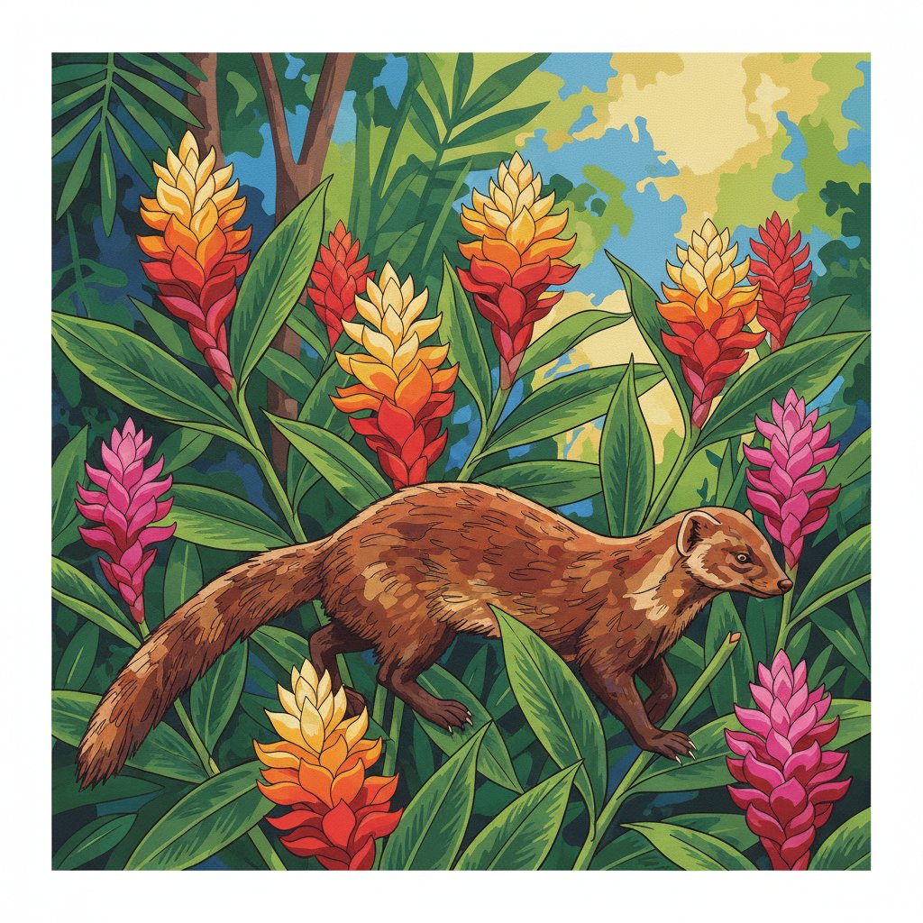Transform your artistic vision into reality with the Mongoose Among Ginger Lilies Paint By Numbers kit. This enchanting design captures a curious mongoose nestled among vibrant ginger lilies. Consequently, you’ll create a stunning woodland masterpiece that celebrates nature’s beauty.