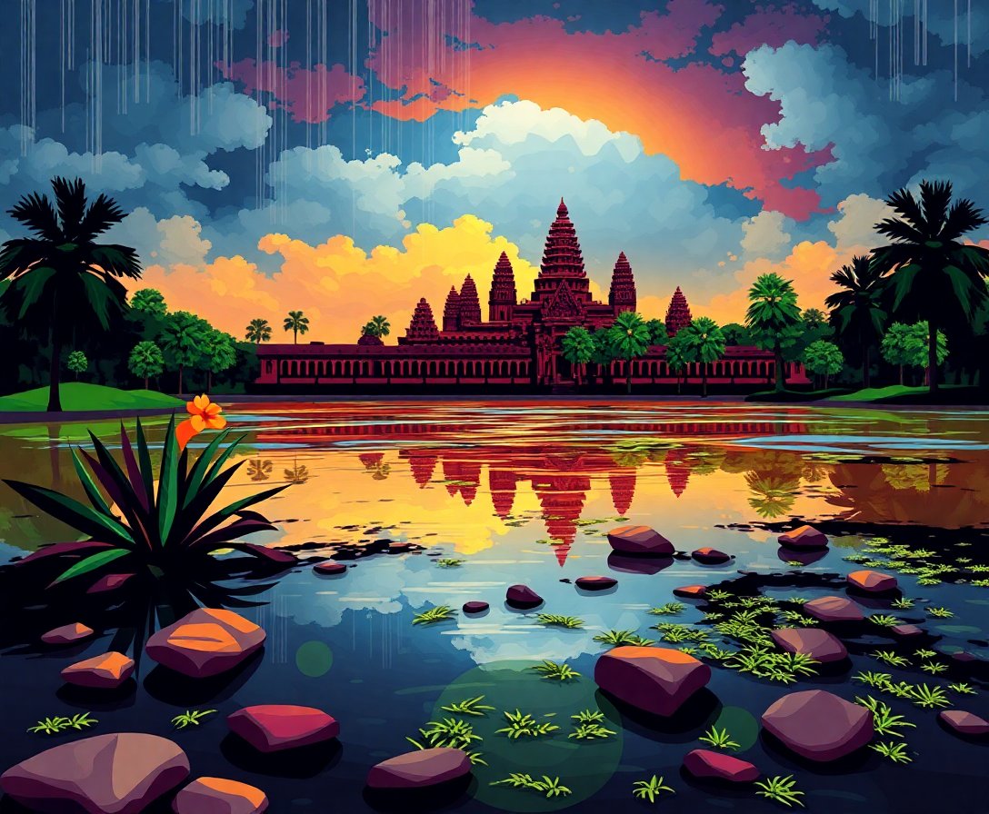 Experience the mystique of ancient Cambodia with this breathtaking Monsoon Over Angkor Thom Paint By Numbers kit. Transform your living space into an artistic sanctuary while capturing the dramatic beauty of stone ruins beneath stormy Southeast Asian skies.