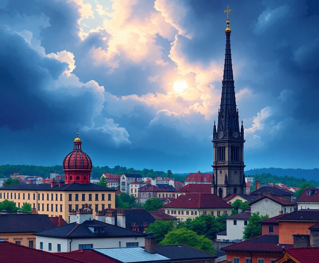 Ultimately, step back and admire your completed vintage spire emerging from stormy skies. Furthermore, the dramatic contrast between historical architecture and turbulent weather creates a striking focal point for any room.