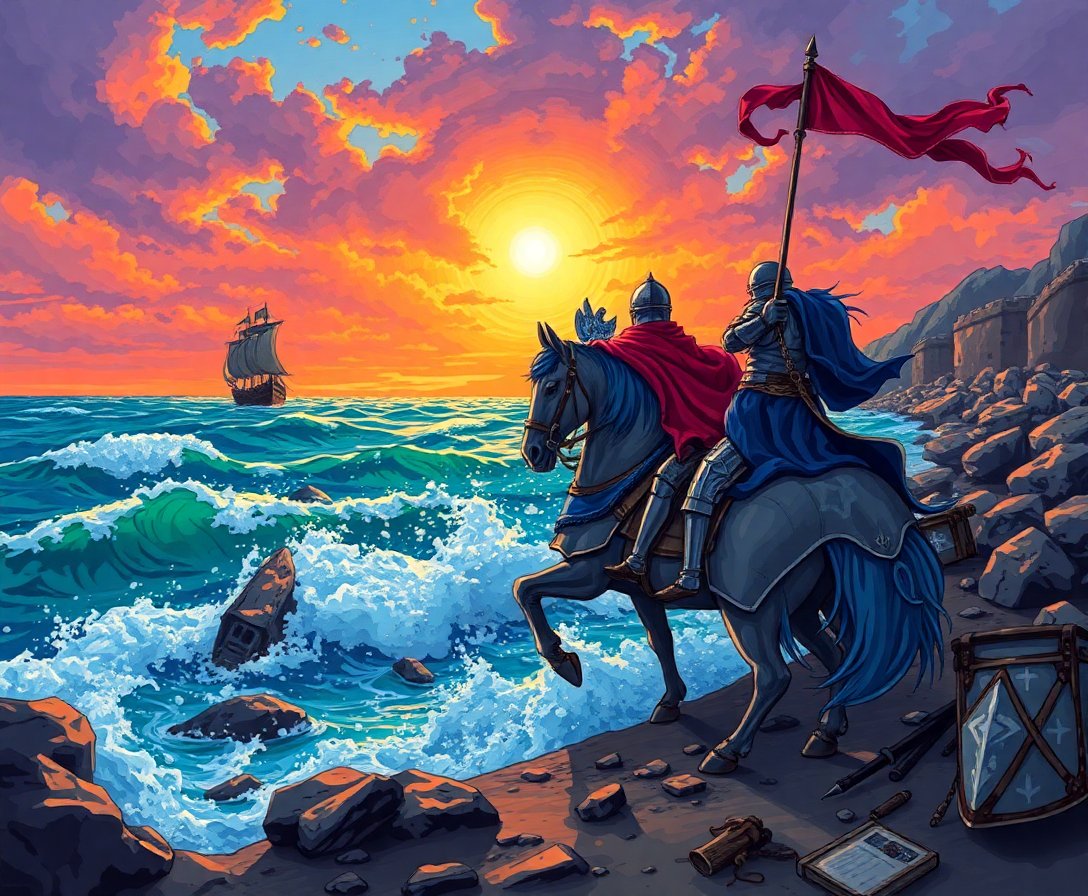 Transform your space with this captivating Monsoon Swept Knight Shore Paint By Numbers masterpiece. This dramatic scene captures a noble knight standing resolute against nature’s fury on a storm-lashed tropical shore. Dark clouds swirl overhead while monsoon rains create an atmosphere of epic adventure and chivalry.