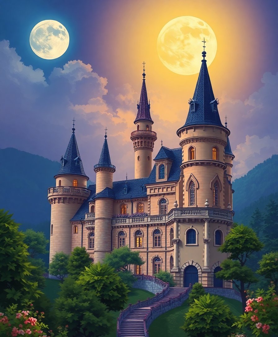 Embrace the serenity of moonlit architecture and create a stunning vintage castle masterpiece that will grace your walls for years to come.