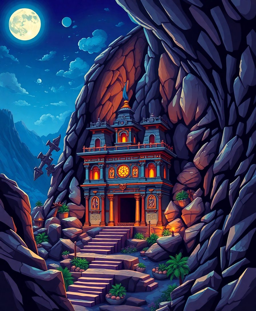 Ultimately, step back and admire your completed cavern temple masterpiece. The moonlit shadows and realistic stone textures create depth and mystery. Furthermore, the finished piece becomes a conversation starter that showcases your artistic achievement.