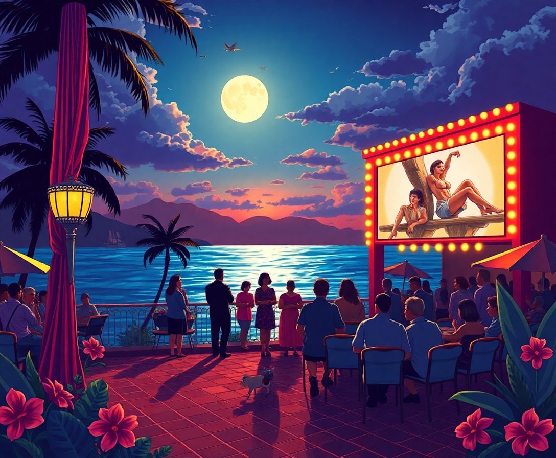 Ultimately, step back and admire your completed tropical cinema masterpiece. Furthermore, the hanging kit allows immediate display of your finished artwork. Your painting now captures the magical essence of Hawaiian evening entertainment.