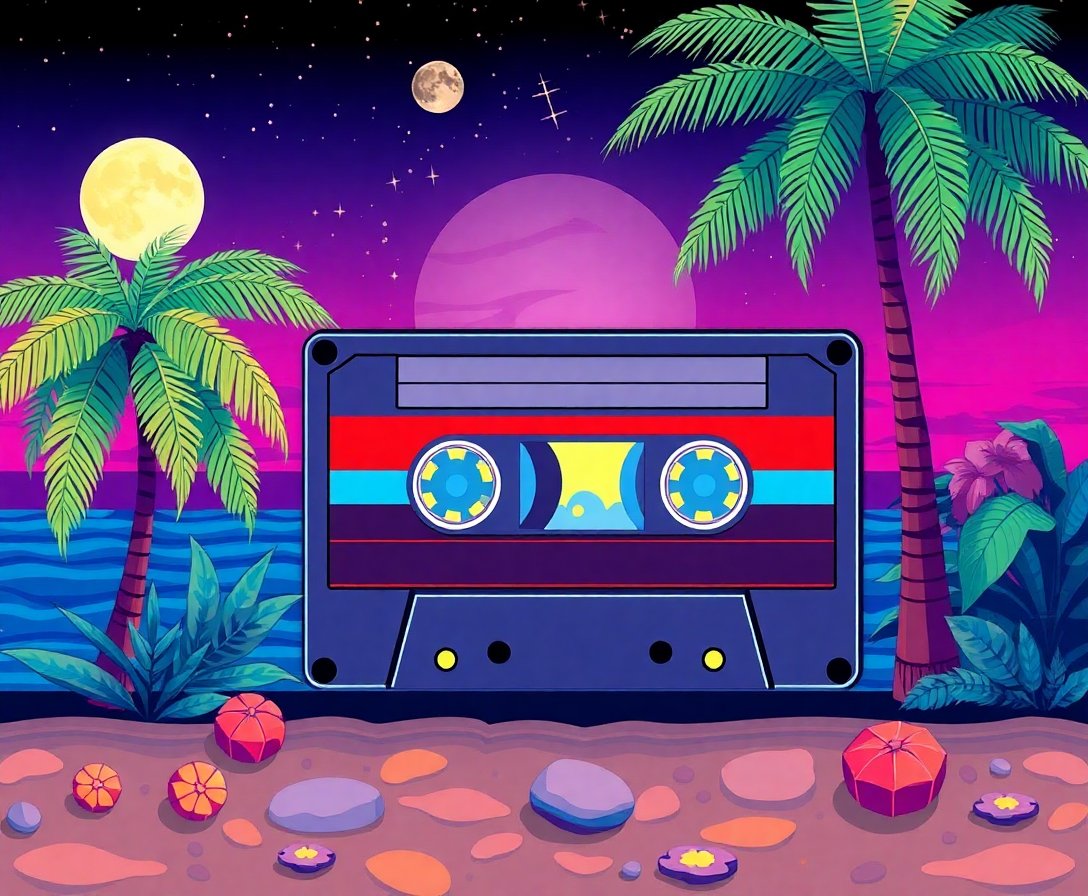 Premium linen canvas ensures durability and professional appearance. High-quality acrylic paints provide vibrant colors that capture moonlit tropical scenes beautifully. The unique cassette tape theme appeals to both art enthusiasts and nostalgia lovers. Perfect for personal enjoyment or gifting to fellow retro culture appreciators.