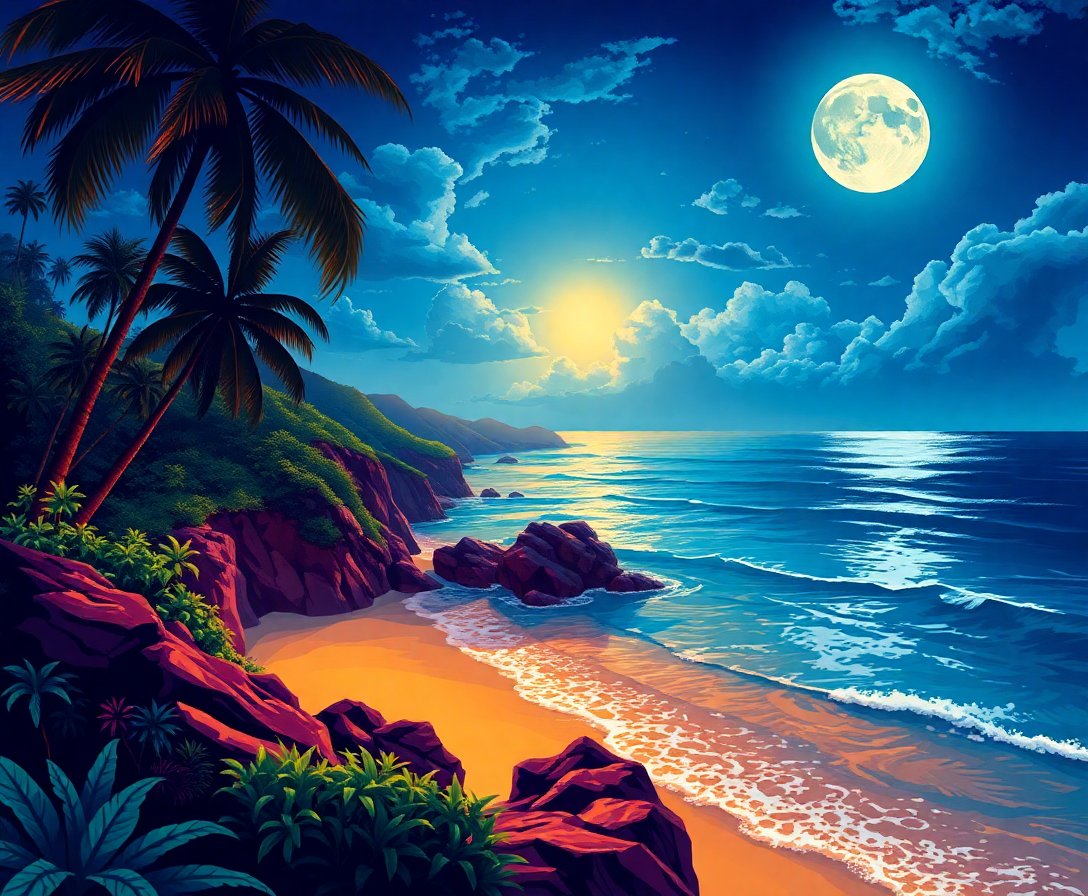 Transform your space with the breathtaking beauty of our Moonlit Tropical Cliffside Paint By Numbers kit. This stunning artwork captures dramatic coastal cliffs bathed in ethereal silver moonlight. Furthermore, the tropical ocean setting creates a mesmerizing scene that brings tranquil energy to any room.
