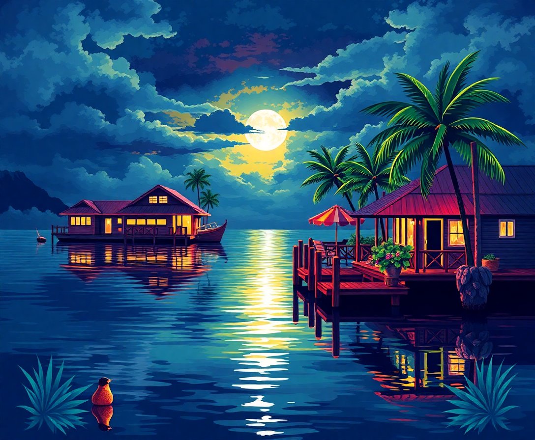 What makes this tropical moonlight scene special?