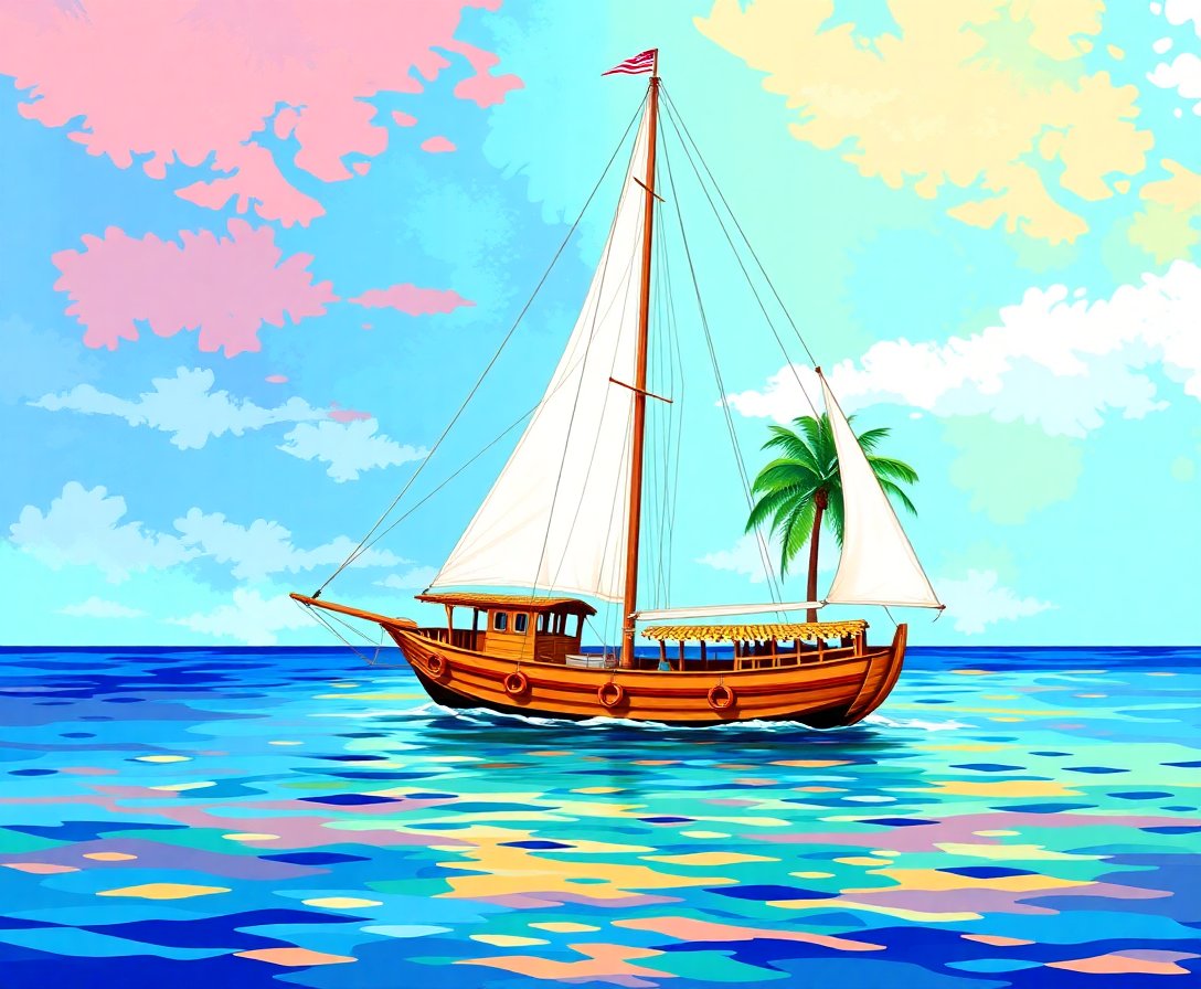 Subsequently, start with larger sections using medium brushes, then progress to detailed areas. Follow the numbered guide systematically. Moreover, each brushstroke brings the tropical schooner to life with vibrant island colors.