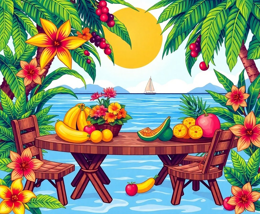 This creative journey offers therapeutic relaxation while developing artistic skills. Moreover, the meditative process reduces stress naturally. Each session transports you to a peaceful island morning filled with tropical abundance. The bright colors and sunlit composition create an uplifting atmosphere in any room.