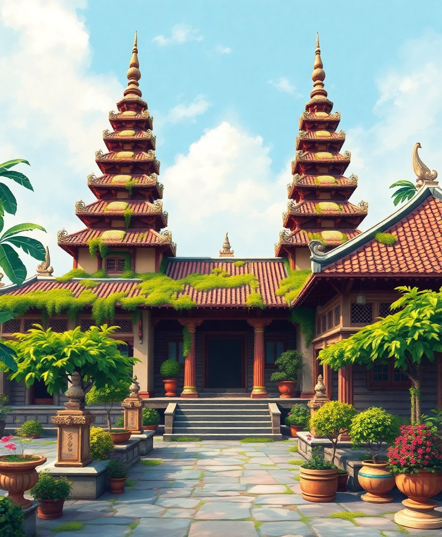 Ultimately, step back and admire your completed masterpiece. The vintage temple faces now smile through layers of moss and jungle growth. Your finished artwork radiates the serene wisdom of Southeast Asian Temples, ready for display.