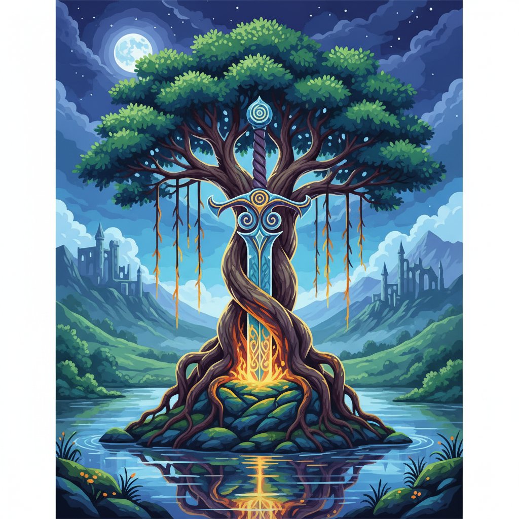 Transform your space with the enchanting Mystic Banyan Tree Sword Paint By Numbers, where ancient legend meets artistic expression. This captivating kit brings together mystical forest imagery with Arthurian symbolism. Each brushstroke reveals the magic of a legendary sword nestled within an ancient banyan’s embrace.