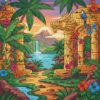 The canvas measures 16×20 inches, perfect for displaying in any room. The detailed stronghold and tropical elements create an impressive focal point for your wall.