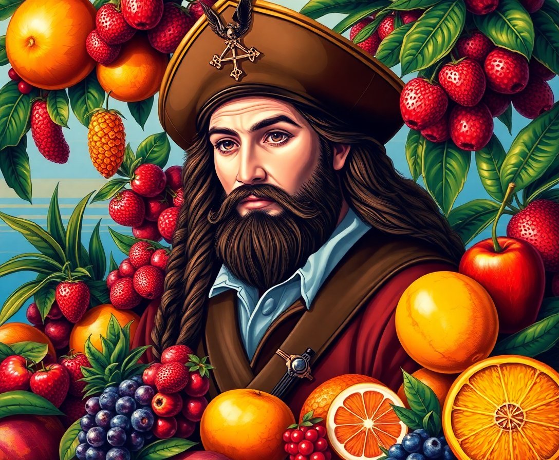 This design combines classical Renaissance portraiture with vibrant tropical fruit elements, creating a unique artistic experience. The realistic style offers both historical appreciation and modern visual appeal.