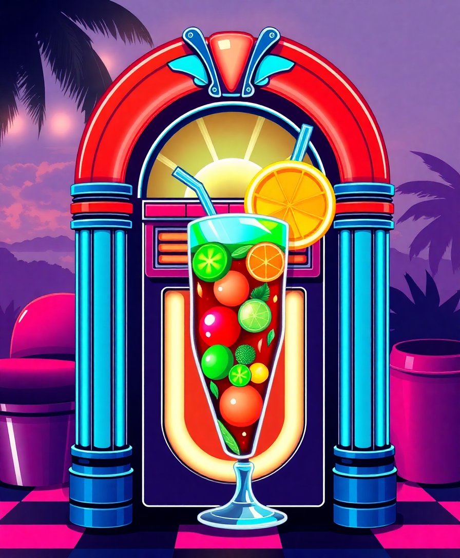 Ultimately, step back and admire your finished tropical diner masterpiece. The vibrant neon glow and classic diner jukeboxes aesthetic create stunning wall art. Furthermore, your completed painting captures the essence of retro cocktail culture perfectly.