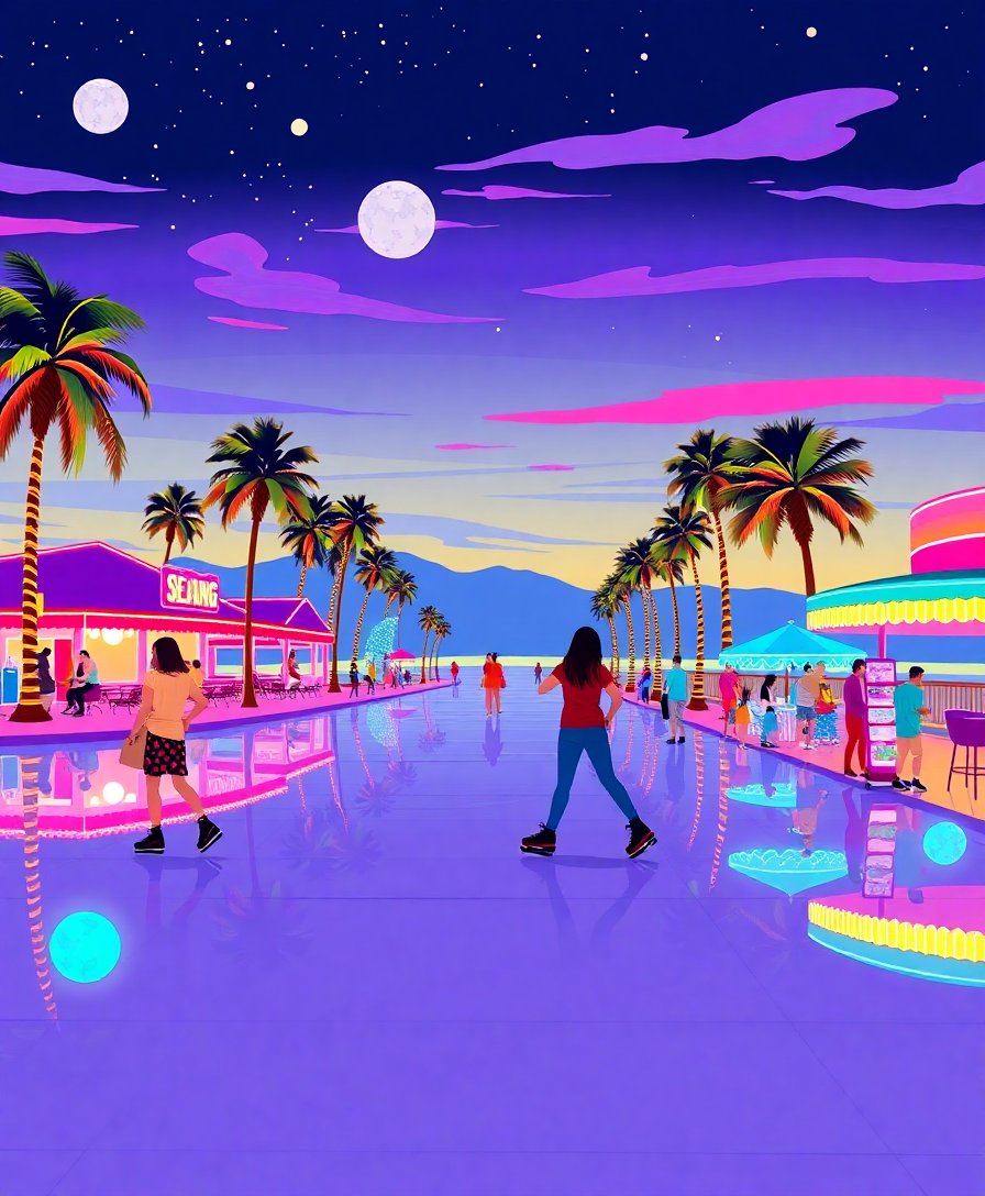 Neon Palms Seaside Skating Paint By Numbers