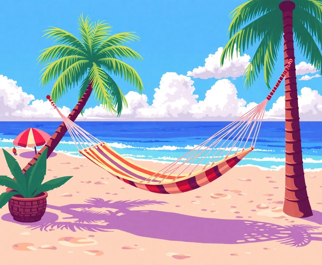 Transform your space with the Nostalgic Beachfront Hammock Play Paint By Numbers kit. This unique design blends retro gaming nostalgia with serene ocean views. Create a stunning masterpiece that captures the essence of vintage gaming meets tropical paradise.