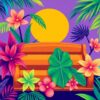 Ultimately, step back and admire your finished creation. The vibrant sunset hues and pixelated details bring this nostalgic scene to life. Your completed artwork celebrates both gaming culture and tropical tranquility.