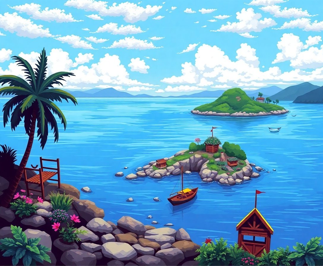 Ultimately, step back and admire your finished creation. The nostalgic island vista now graces your wall beautifully. Frame your artwork or display it directly. Share your accomplishment with friends and family proudly.