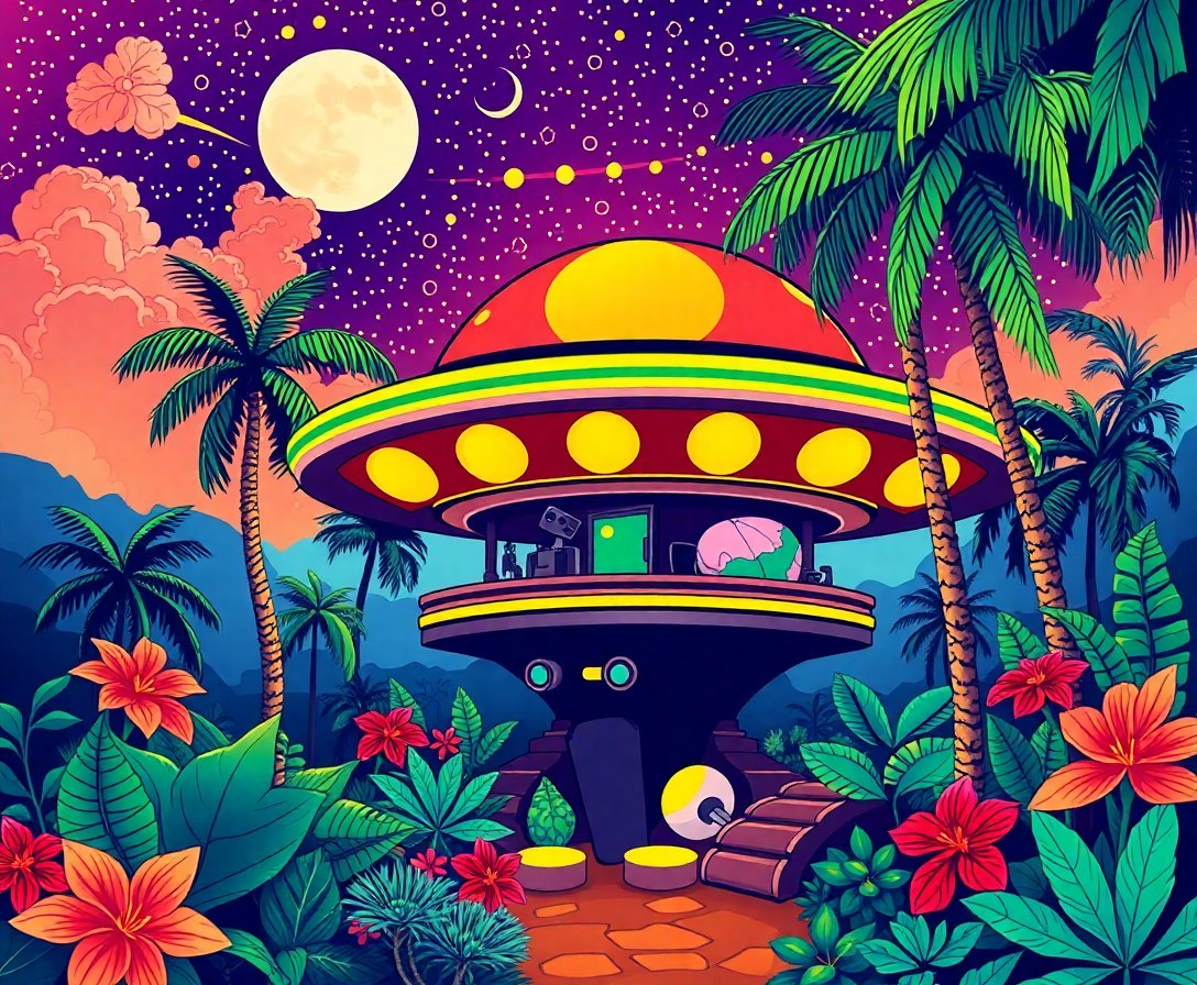 Transform your creative space with the captivating Observing The Tropical Saucer Paint By Numbers kit. This extraordinary design combines tropical warmth with golden age sci-fi charm, creating an unforgettable artistic journey. Perfect for enthusiasts seeking something beyond ordinary artwork.