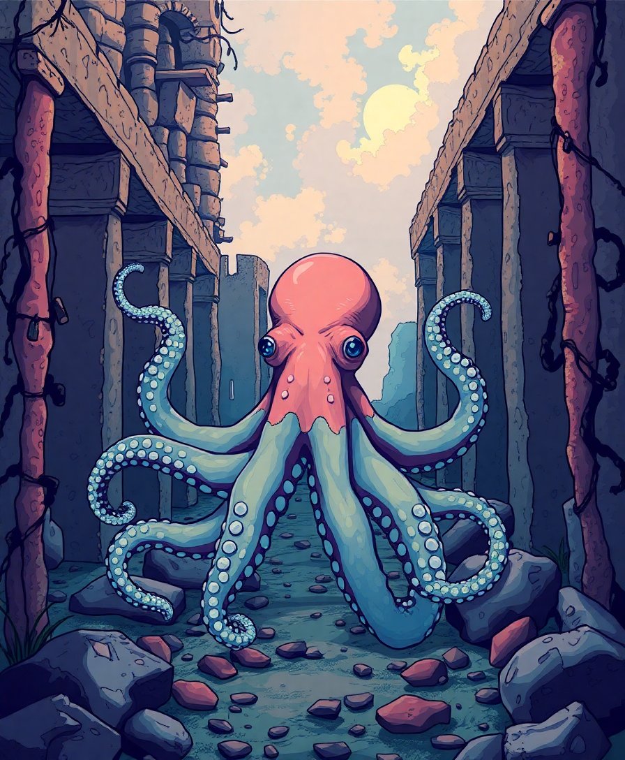 Dive into an enchanting underwater world where ancient mysteries meet marine wonder. This Octopus Amidst Vintage Ruins Paint By Numbers transforms your creative space into an aquatic archaeological adventure. Each brushstroke brings forgotten temples and graceful tentacles to life.