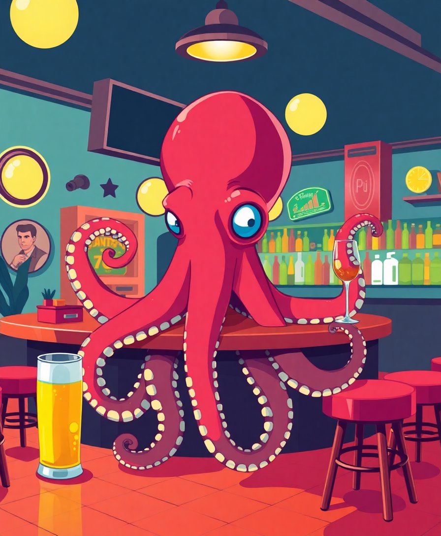 Step into a whimsical underwater world with this captivating Octopus At Retro Bar Paint By Numbers design. This vintage-inspired masterpiece combines oceanic charm with retro tavern atmosphere. Transform your space with this moody, entertainment-focused artwork that brings together cephalopod elegance and nostalgic bar culture.