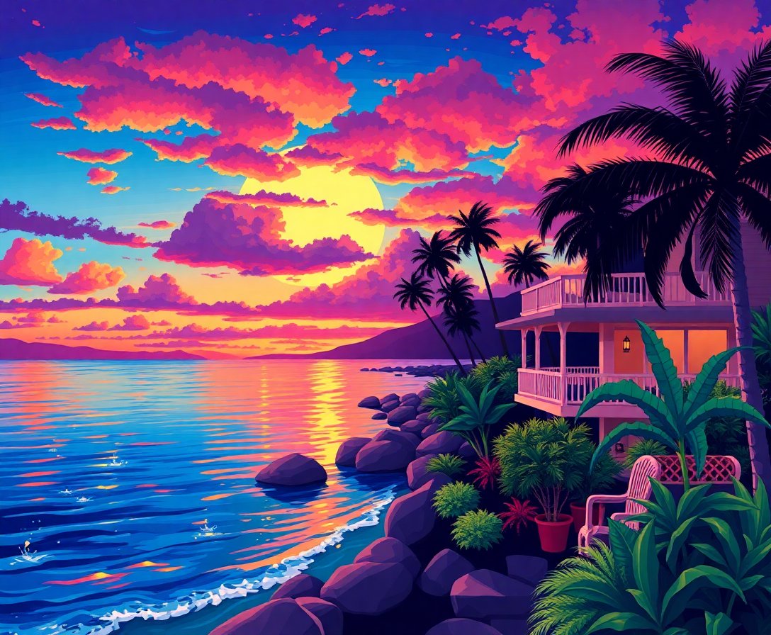 Ultimately, step back and admire your completed tropical sunset featuring classic Hollywood glamour. Consequently, you’ll have created a stunning piece worthy of any pop culture collection.