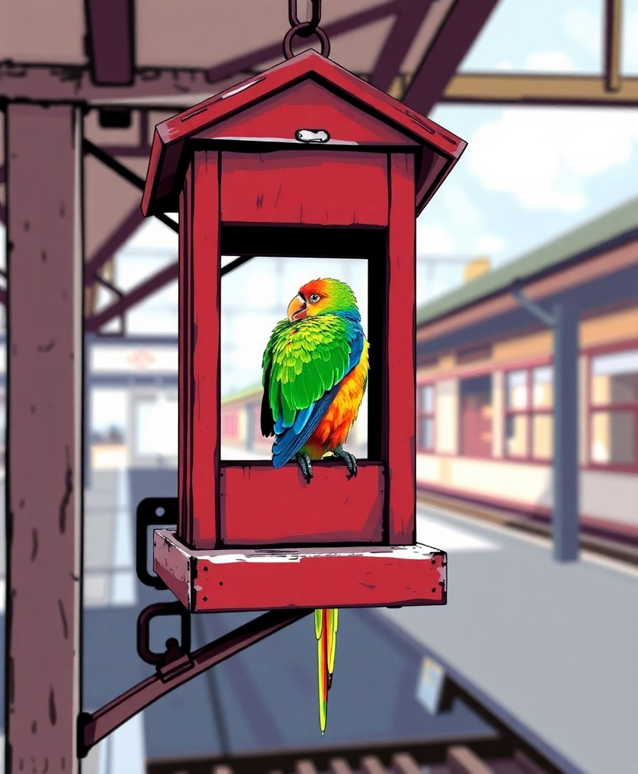 Subsequently, begin with lighter colors and work systematically through each numbered section. The architectural elements blend beautifully with tropical bird details. Take your time with intricate areas like feather textures and weathered railway features.
